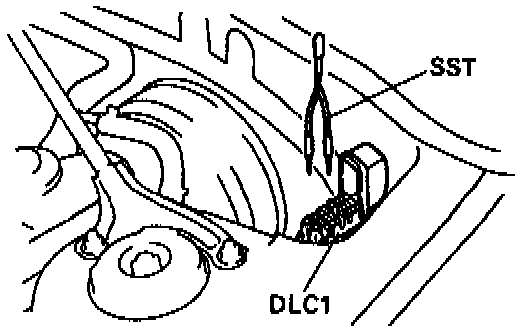 2. Using Special Service Tool (SST) (09843-18020), connect terminals TE1 and E1 of DLC 1.