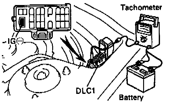 ^ With a tachometer connected to the system, connect the tester probe of the tachometer to terminal IG (-) of the DLC 1.