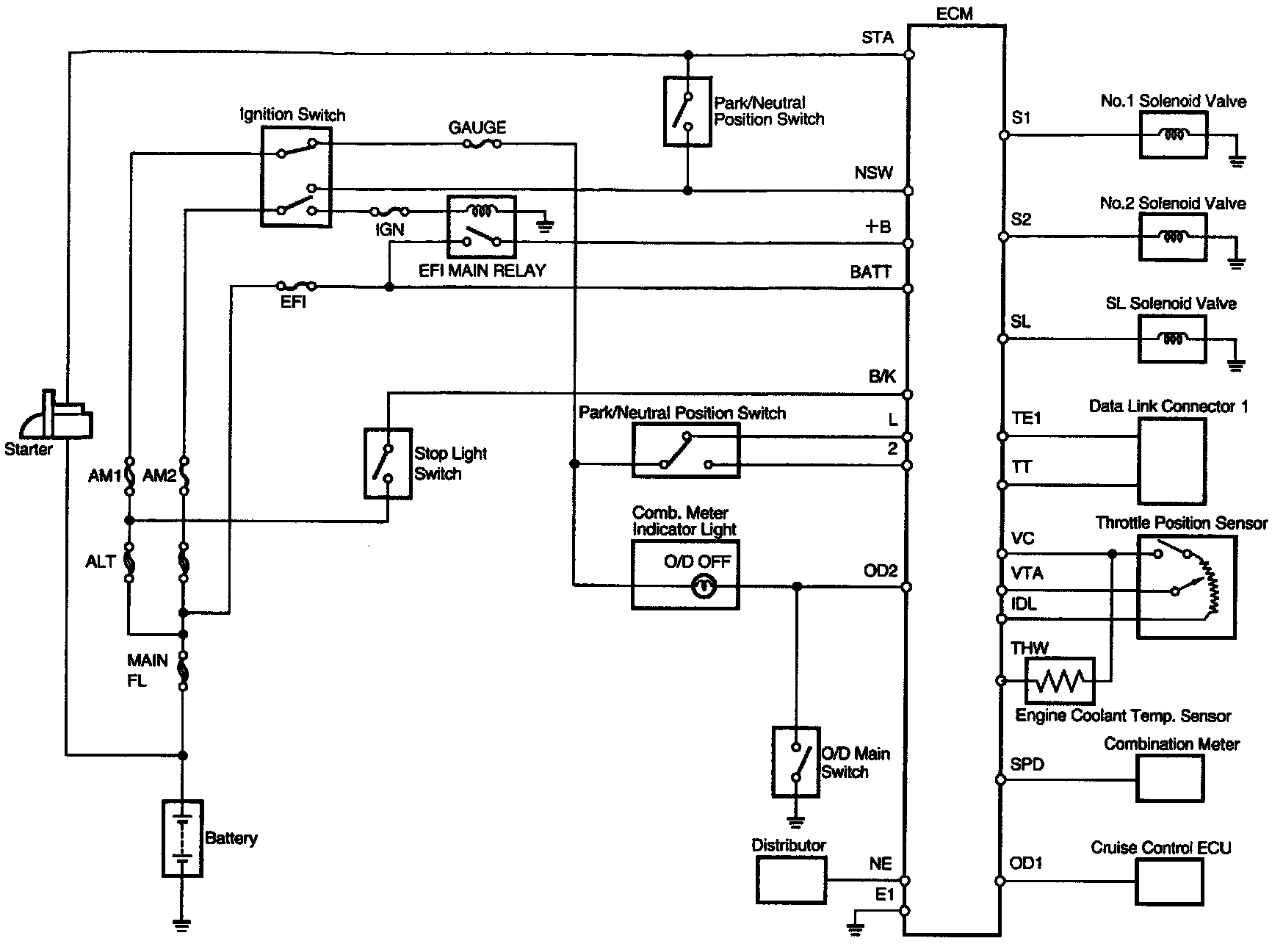 NOTE: This vehicle uses the Toyota Computer Controlled System (TCCS) which uses an integrated electronic engine and transmission control unit employing separate microprocessors for each function.