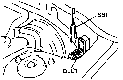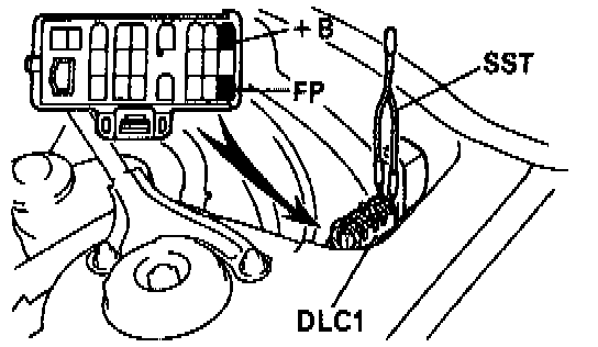 (a) Using Special Service Tool (SST) (09843-18020), connect terminals +B and FP of the data link connector 1 (DLC1).