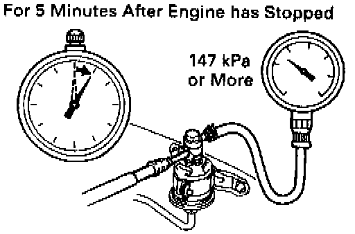 (q) Check that the fuel pressure remains as specified for 5 minutes after the engine has stopped.