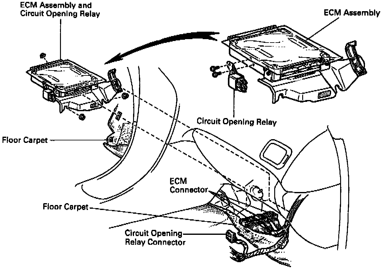 The Circuit Opening Relay Is Mounted On The ECM, In The Lower/Center Area Of The Dash:
