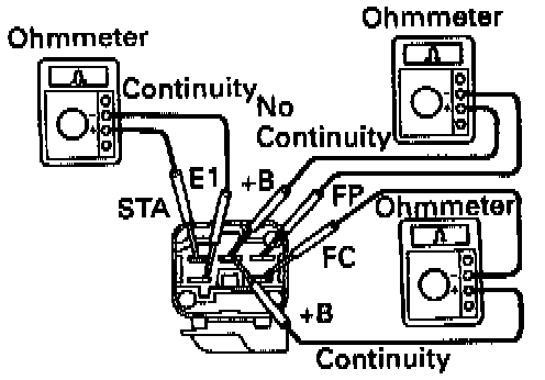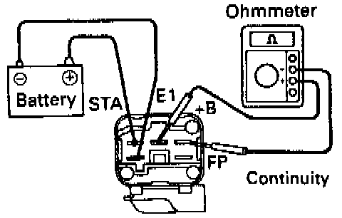 - Using an ohmmeter. check that there is continuity between terminals +B and FP.