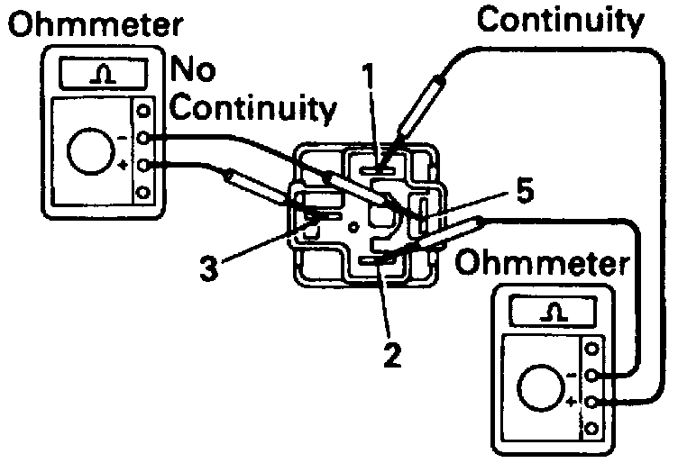 1. Using a suitable ohmmeter, check relay continuity as follows: