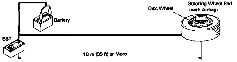 5. Connect special deployment tool No. 09082-00700, or equivalent, to air bag electrical connector from underneath wheel.