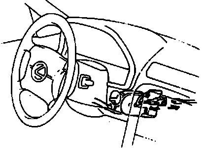 4. Connect deployment tool 09082-00700, or equivalent, to the airbag connector from underneath the the wheel. Move deployment tool at least 33 feet away from wheel.