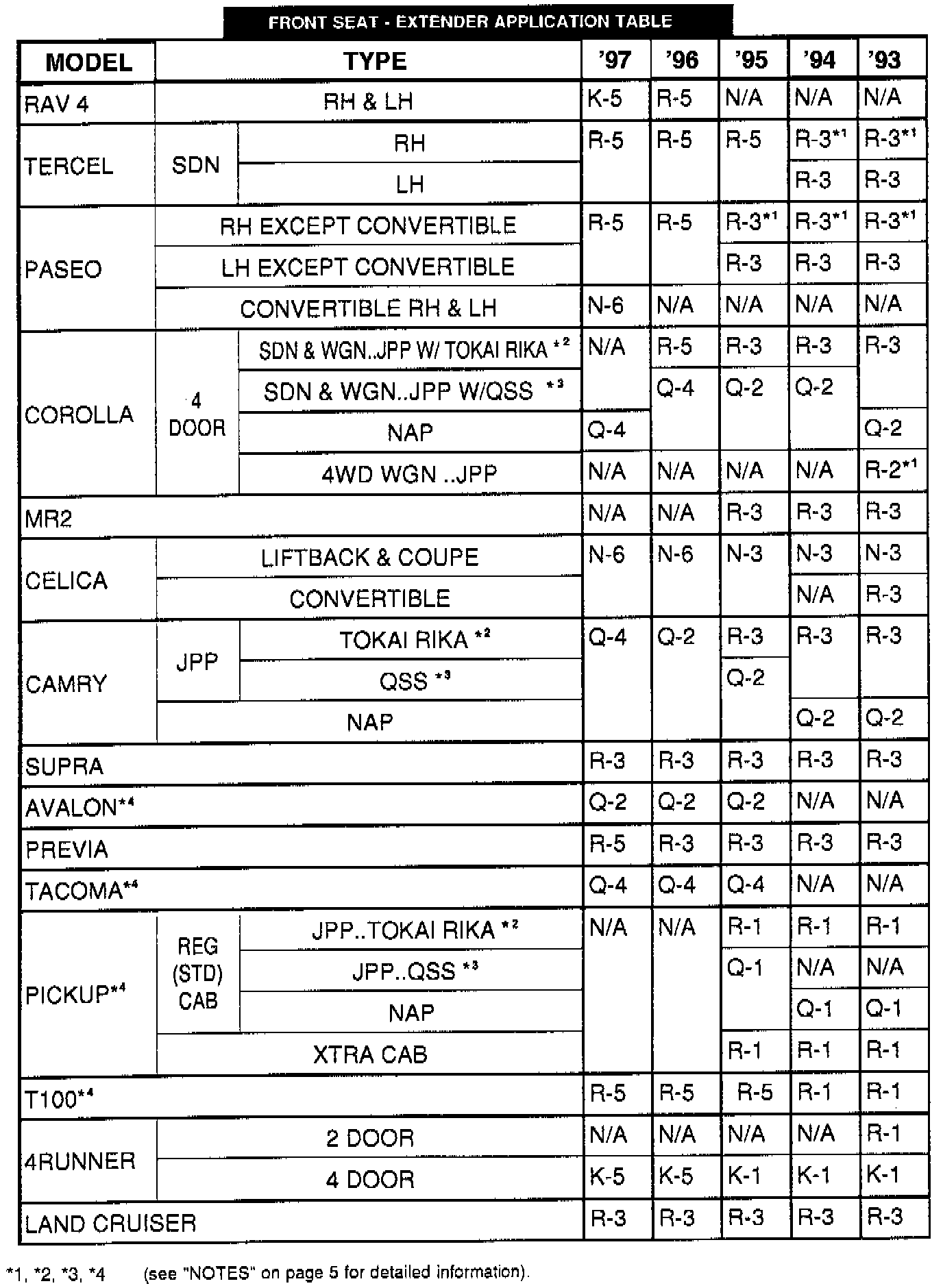 ^ Owner's are informed of the seat belt extender availability through the Toyota Owner's Manual included in each vehicle.