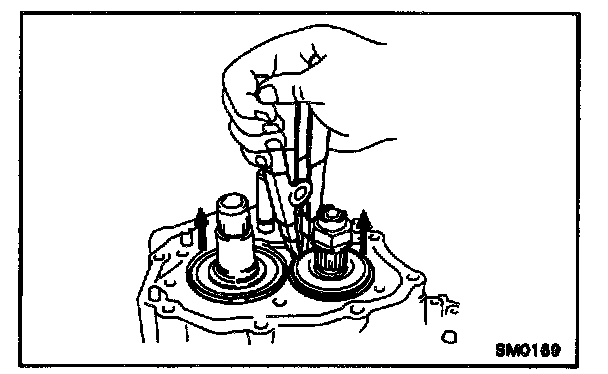HINT : If it is difficult to remove the snap rings, pull up the shafts.