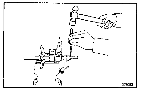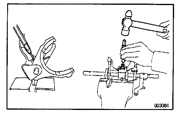 b. Using a pin punch and hammer, drive out the slotted spring pin from the No.1 fork shaft.