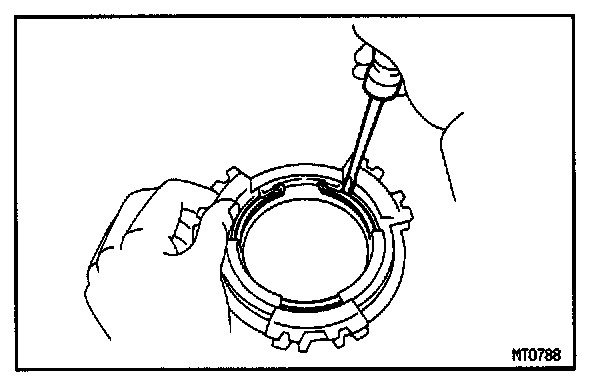 HINT : Wrap vinyl tape on the screwdriver to prevent damaging the synchronizer ring.