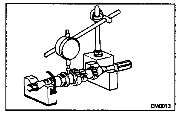 c. Using a dial indicator, check the shaft runout.