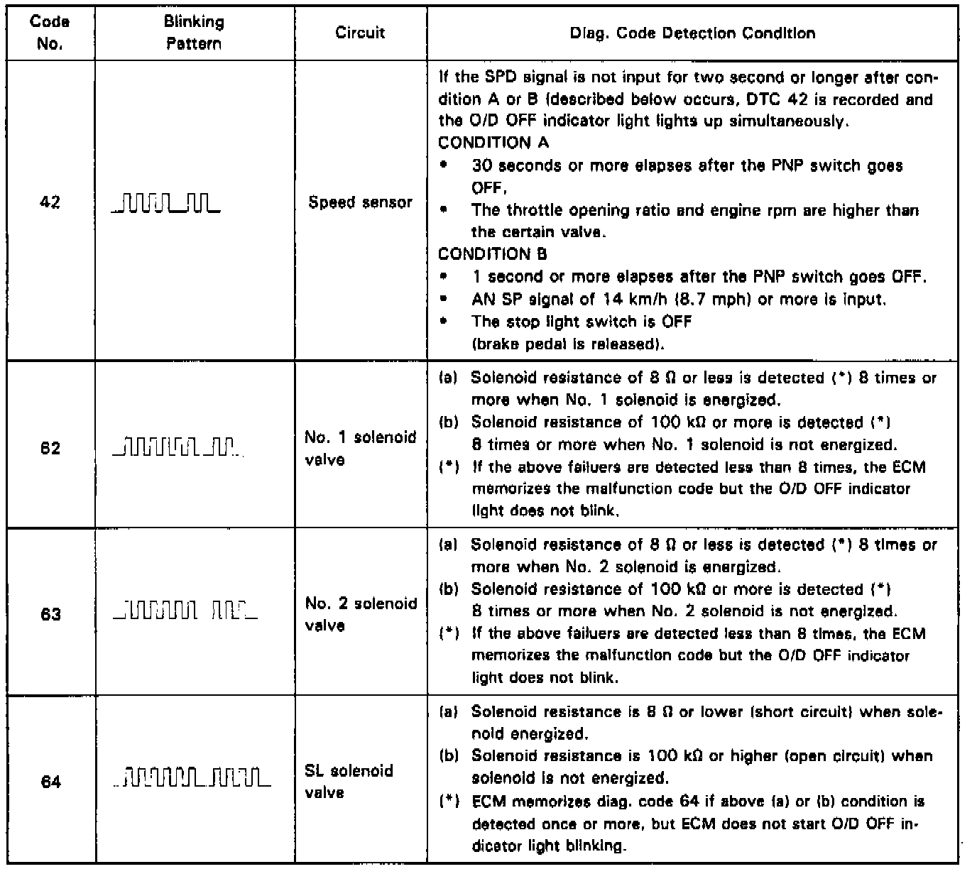 - If the diagnosis system output a trouble code even though the O/D OFF indicator was not blinking, there is an intermittant trouble. Check all connections in the circuit(s) corresponding to that code.