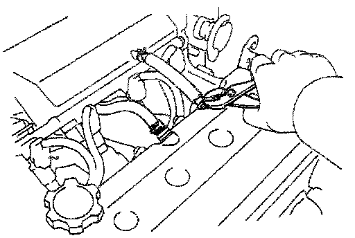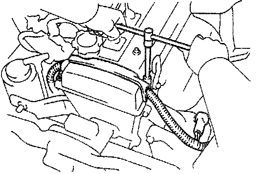 (a) Measure the timing belt deflection as shown in the illustration.