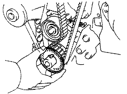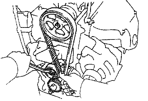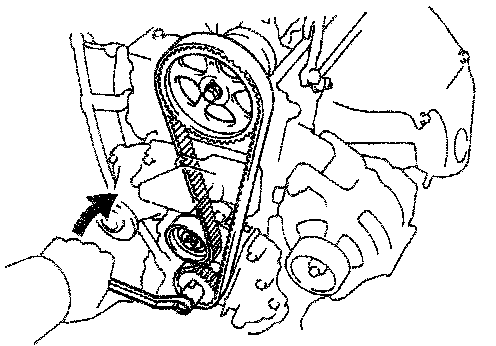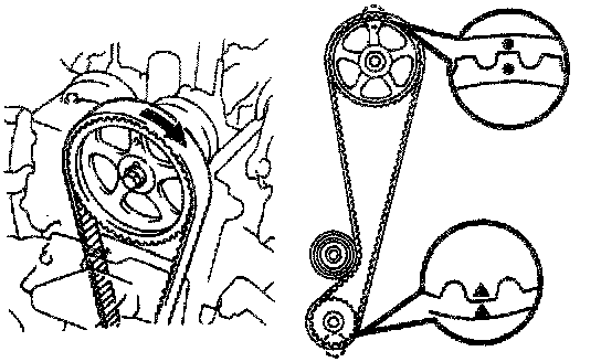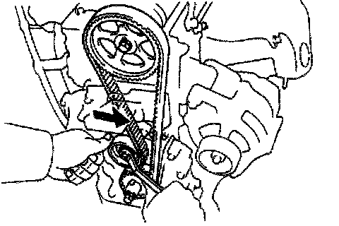HINT: If reusing the timing belt, align the points marked during removal and install the belt with the arrow pointing in the direction of engine revolution.