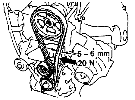 Timing belt deflection: 5 - 6 mm (0.20 - 0.24 in.) et 20 N (2 kgf, 4.4 lbf)