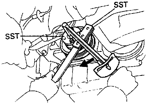 (c) Using SST 09213-14010 and 09330-00021, install the pulley bolt.