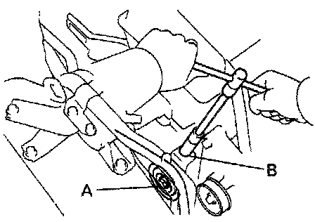 Install the drive belt with the idler pulley nut and adjusting bolt B.