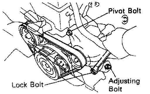 Install the drive belt with the pivot and adjusting bolts.