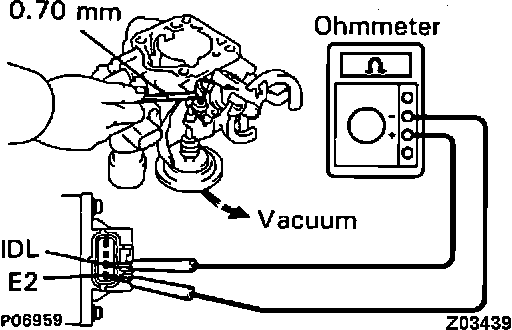 3. Connect ohmmeter across TPS terminals IDL and E2.