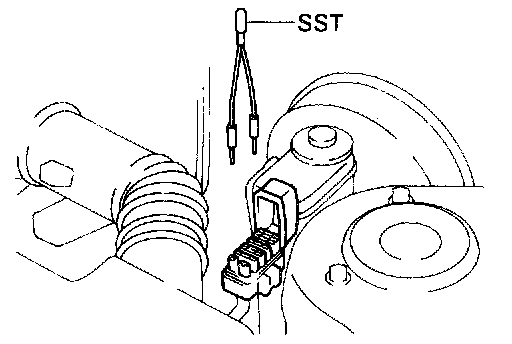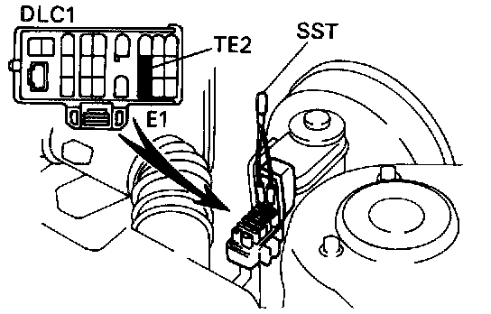 7. After the road test, using SST, connect terminals TE1 and E1 of data link connector 1. SST 09843-18020