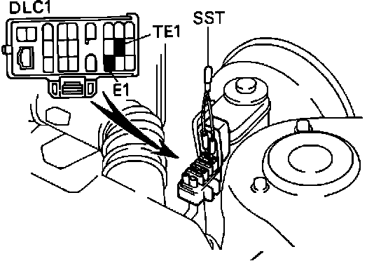 - Using a jumper wire, short terminals TE1 and E1 of the check connector.