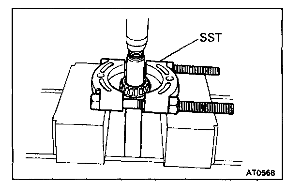 a. Using SST, remove the drive pinion with output flange, bearing and inner race.