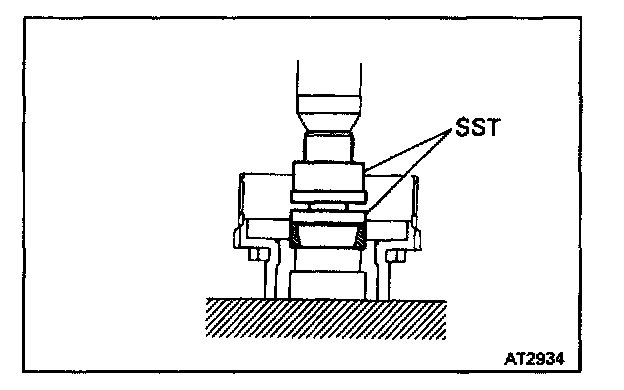 a. Using SST and press, press in the thick race to the flange side of the drive pinion.