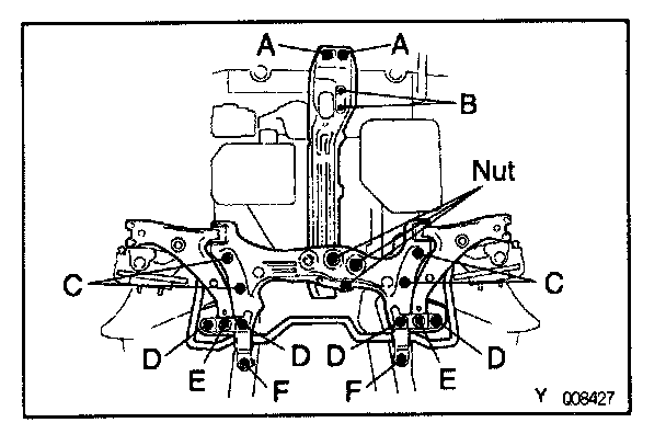 (b) Remove the nut and exhaust pipe stay from suspension member.