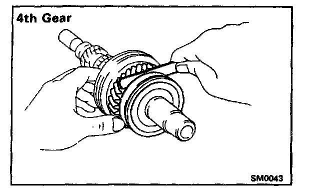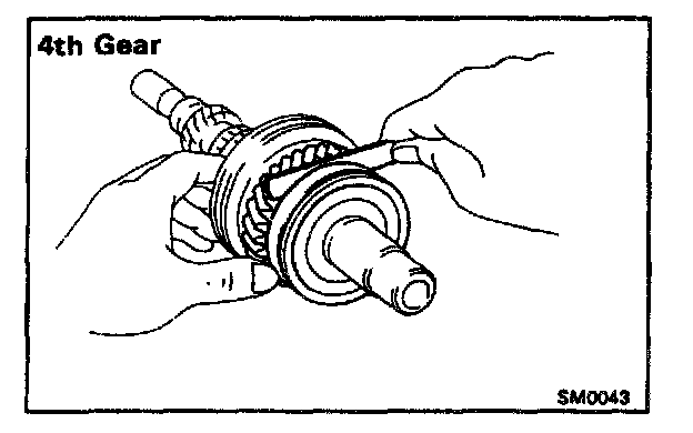 Using a feeler gauge, measure the 4th gear thrust clearance.