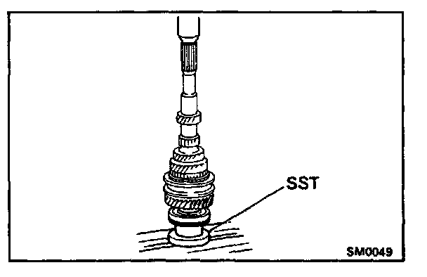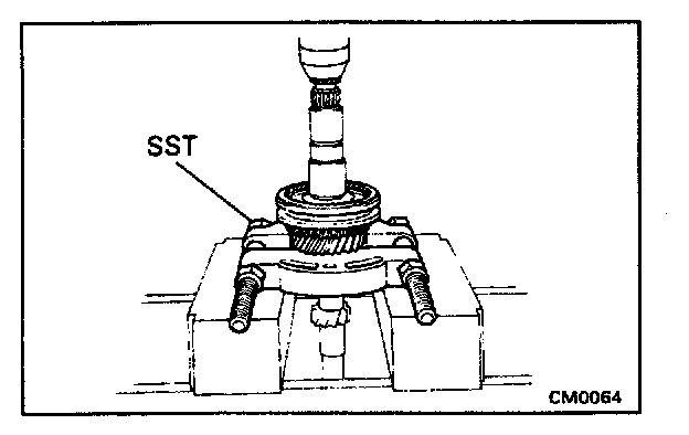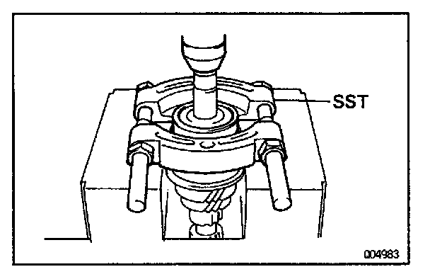 a. Using SST and a press, remove the rear ball bearing.