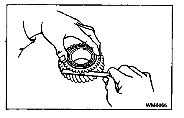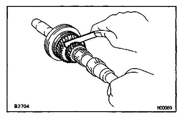 d. Using a feeler gauge, measure the clearance between the synchronizer ring back and gear spline end.