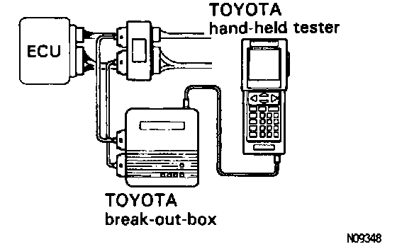 1. Hook up the TOYOTA hand-held tester and TOYOTA break-out-box to the vehicle.