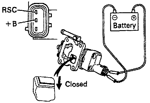 1. Connect the positive (t) lead from the battery to terminal +B and negative (-) lead to terminal RSC and check that the valve is closed.