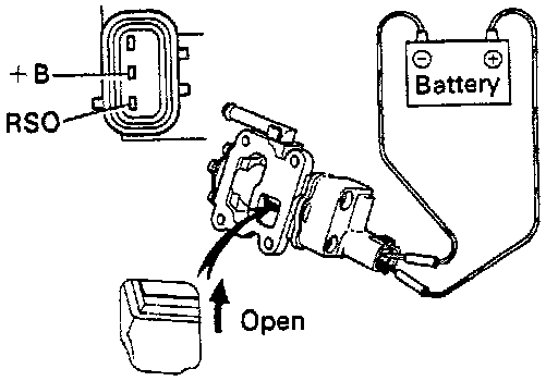 2. Connect the positive (+) lead from the battery to terminal +B and negative (-) lead to terminal RSO, and check that the valve is open.