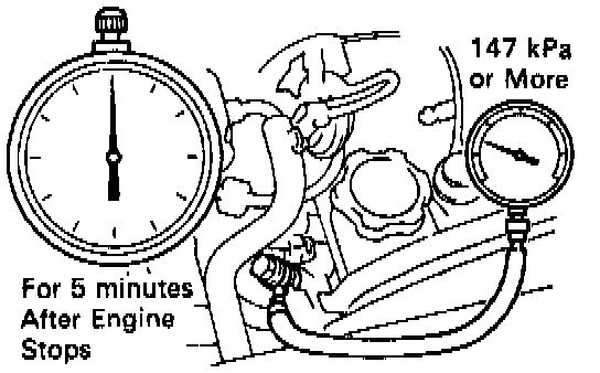 - Check that the fuel pressure remains as specified for 5 minutes after the engine stops.