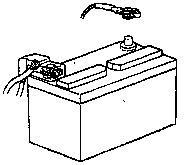 2. Work must be started after 90 seconds from the time the ignition switch is turned to the LOCK position and the negative (-) terminal cable is disconnected from the battery. (The supplemental restraint system is equipped with a back-up power source so that if work is started within 90 seconds of disconnecting the negative (-) terminal cable of the battery, the SRS may be activated.) When the negative (-) terminal cable is disconnected from the battery, memory of the clock and audio systems will be cancelled. So before starting work. make a record of the contents memorized by the audio memory system. When work is finished, reset the audio system as before and adjust the clock. To avoid erasing the memory of each memory system, never use a back-up power supply from outside the vehicle.
