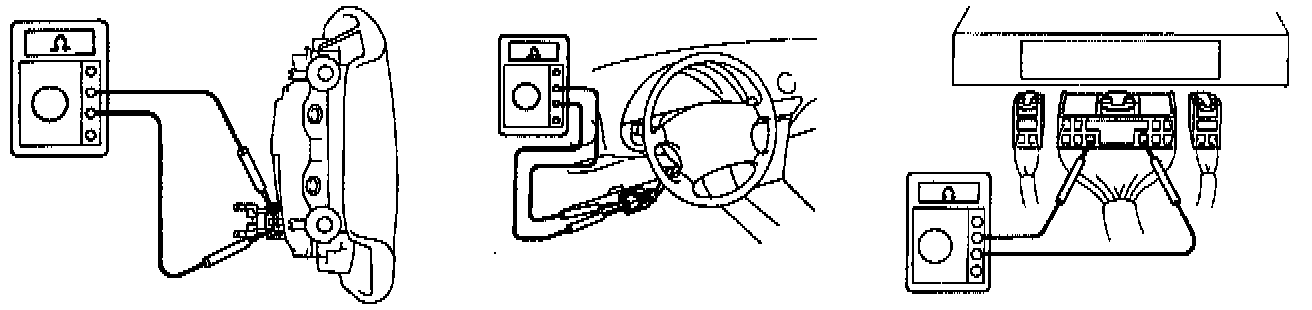 2. Never measure the resistance of the airbag squib. (This may cause the airbag to deploy, which is very dangerous.)