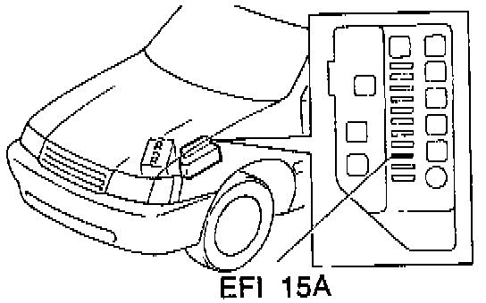 1. After repairing the trouble, the diagnostic trouble code retained in memory by the ECM must be canceled out by removing the EFI fuse (15A) for 10 seconds or more, depending on ambient temperature (the lower the temperature, the longer the fuse must be left out) with the ignition switch off.