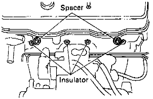 c. Remove the 2 spacers and 4 insulators from the cylinder head.