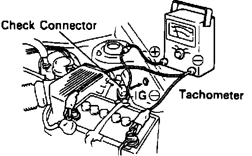 3. Connect a tachometer to the service connector of the distributor or terminal IG- of the check connector.