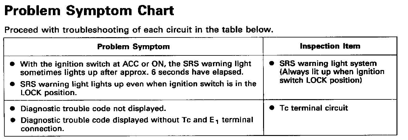 Problem Symptom Table