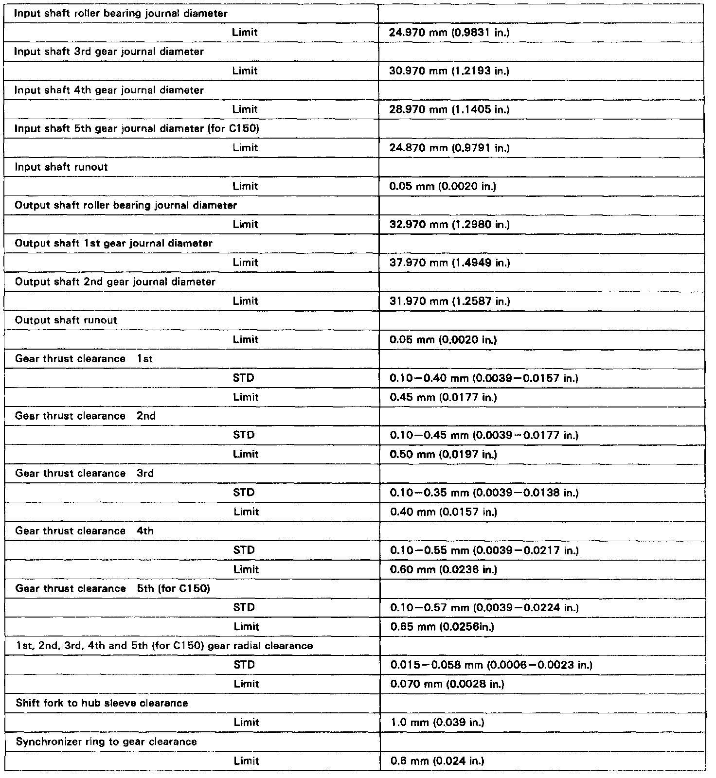 Torque Specifications: