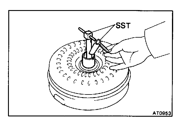 b. Install SST so that it fits in the notch of the converter hub and outer race of the one-way clutch.