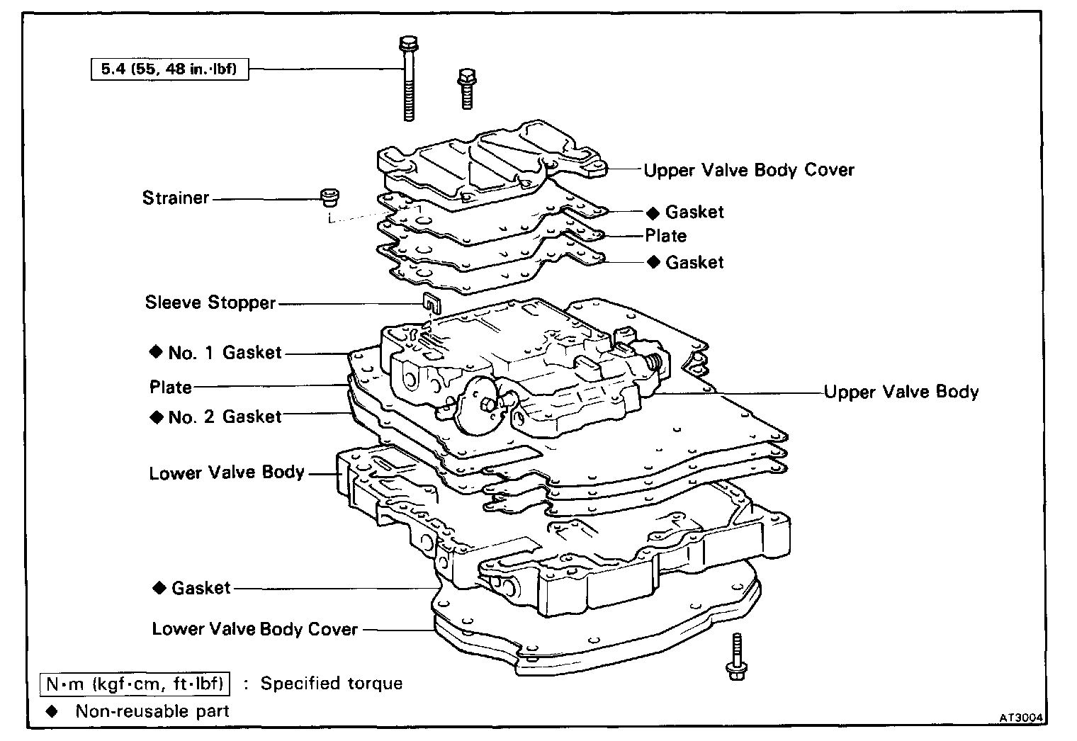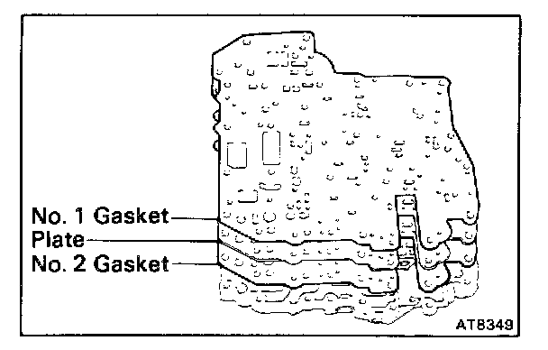 Position the new No.2 gasket, the plate and then the new No.1 gasket on the lower valve body.