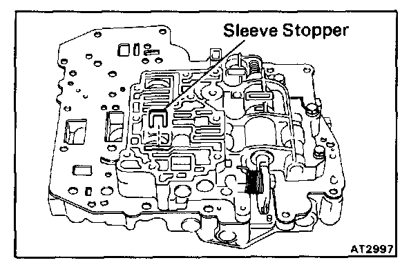 3. REMOVE STRAINER, GASKET, PLATE AND SLEEVE STOPPER FROM UPPER VALVE BODY