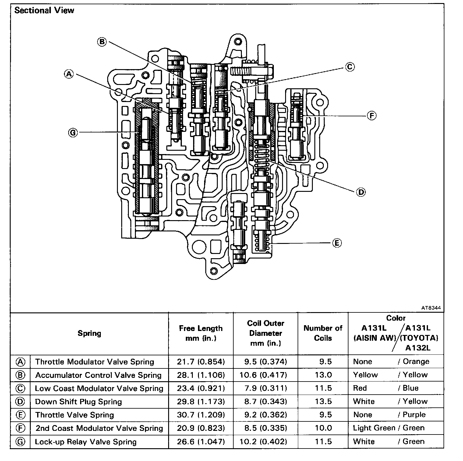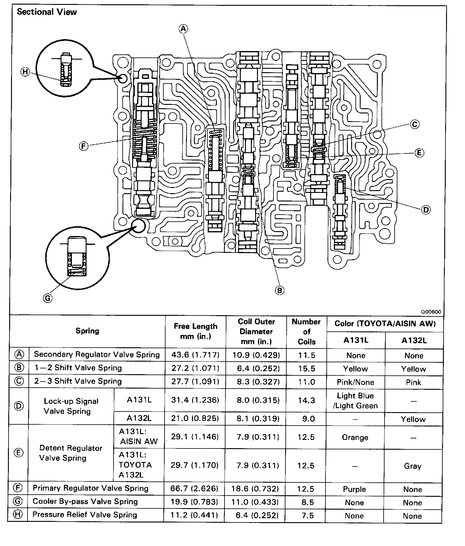 SPECIFICATIONS OF UPPER VALVE BODY SPRINGS
