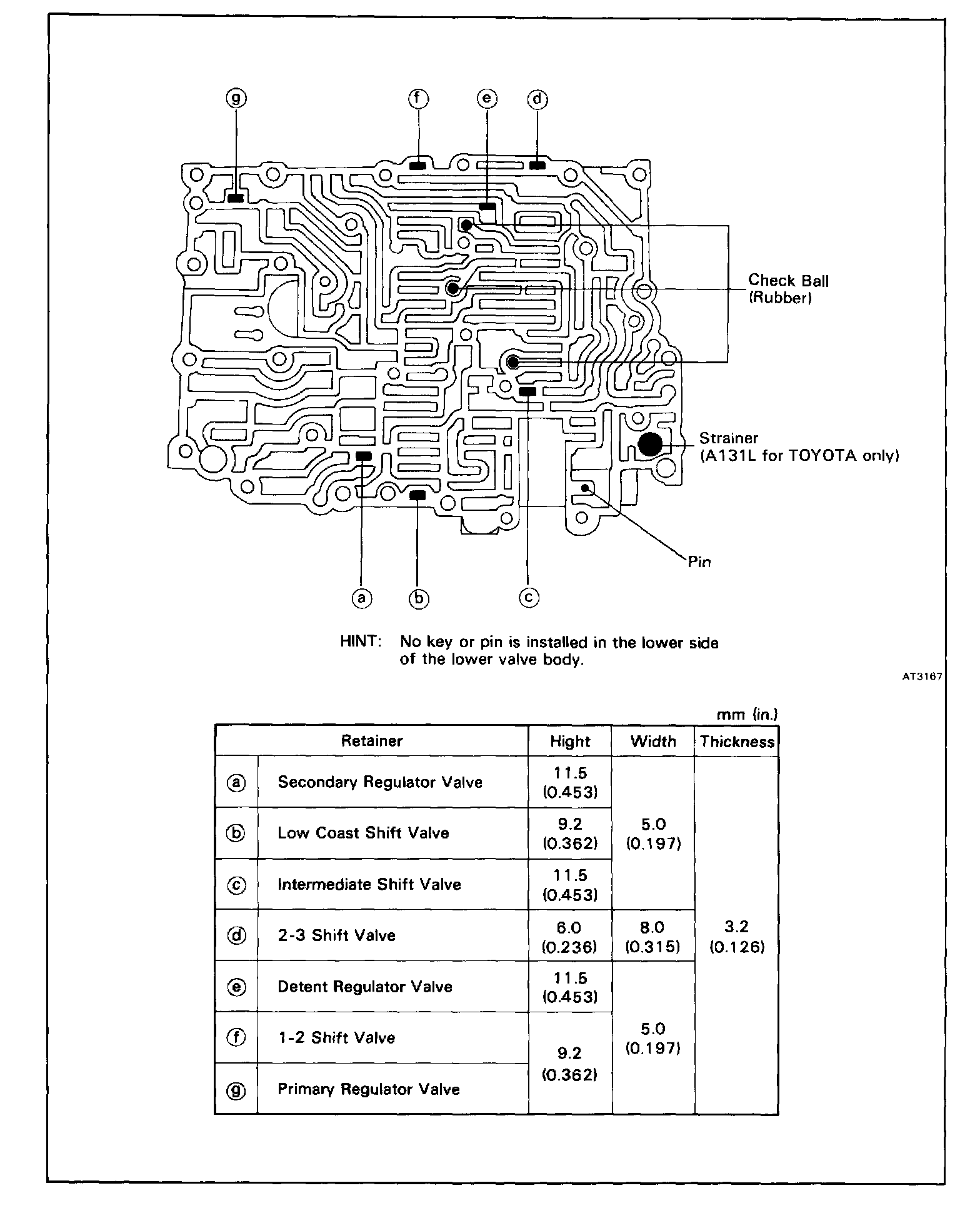a. Make sure that the keys, pin, check balls and strainer (Al 31L TOYOTA only) on the upper side of the lower valve body are installed correctly.