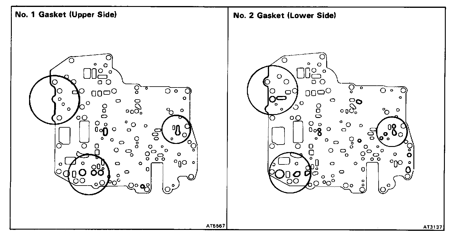 HINT: Since No.1 gasket and No.2 gasket are similar use the illustration above to discriminate between them.