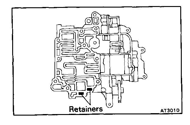 b. Make sure that the retainers, pins, vibrating stopper and check ball on the lower side of the upper valve body are installed correctly.