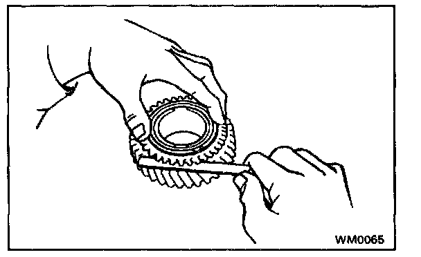 c. Measure the clearance between the synchronizer ring back and gear spline end.